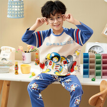 柔臣春秋季秋冬夏季中童中大童男童家居服男生青少年小孩男孩学生纯棉全棉儿童睡衣宝宝长袖套装小童居家服 kay11303太空人长袖 10码 105-110CM