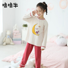 噜噜牛女童睡衣春秋纯棉长袖套装女宝宝中大童岁儿童家居服秋季 花卉白-59205 140cm(14码建议身高130-140)