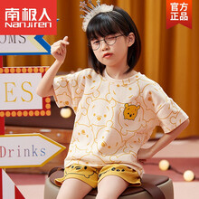 南极人℘旗舰官方店℘ 女童睡衣夏季纯棉短袖薄款儿童绵绸家居服公主女孩空调服小童宝宝 可爱维尼小熊 100cm(8码(建议身高90-100cm))