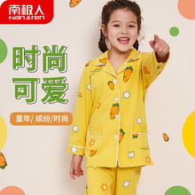 南极人 Nanjiren 儿童睡衣套装小童女童秋装四季款长袖长裤翻领宝宝睡衣儿童家居服黄色140