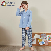 英博伦春秋男童睡衣纯棉长袖薄款中大童男宝宝全棉家居服套装韩版60025浅兰130cm