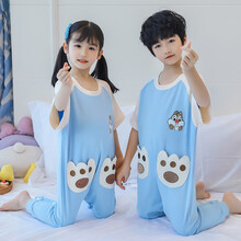 儿童连体睡衣纯棉夏季短袖中大童男童女童宝宝防踢家居服小男孩 L052 16码