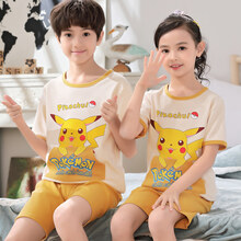 李小姐 儿童睡衣夏季纯棉短袖男孩宝宝家居服男女童大童春夏天小孩套装薄款 QD2252皮卡丘(口袋) 150cm(S码 建议身高145-155)