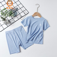 恒源祥男童睡衣夏季薄款短袖莫代尔男孩儿童冰丝无痕套装女童宝宝空调服小孩子小学生夏天穿的 蓝色 150适身高135-145cm
