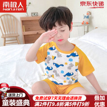 南极人儿童睡衣夏季男童空调服套装宝宝绵绸薄款夏装短袖家居服小恐龙衣服中小童学生空调衫2-4-9岁 恐龙短袖套装黄色 110