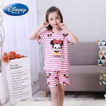℘Disney/迪士尼 儿童睡衣夏季男童短袖空调服小孩中大童宝宝薄款女童套装家居服 短袖条纹米妮 8码(100-110cm)