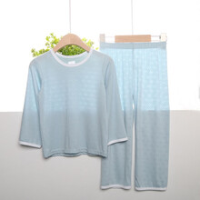 此心如衣儿童莫代尔睡衣套装长袖宽松空调房家居服冰丝男孩男童长裤超薄镂空中大童排汗透气宝宝夏季夏天 雾蓝色 吊牌160码-建议身高150cm
