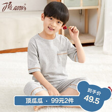 顶瓜瓜儿童睡衣纯棉男童女童家居服套装薄款宝宝小女孩春秋夏季短袖空调服中大童学生居家服小孩七分裤家居服 麻灰 160cm