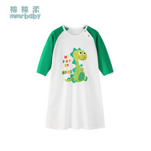 儿童睡袍夏季宝宝空调睡衣防踢男童小孩家居袍纯棉3夏天长款睡裙长袖薄款一岁2 翠绿色 90cm