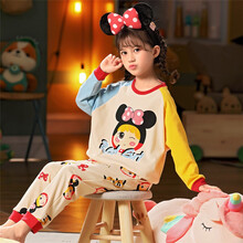 柔臣儿童睡衣女童长袖春秋季纯棉大童小女孩学生可爱新品青少年卡通休闲秋冬季中童小童宝宝全棉家居服套装 x-20730长袖女 S码 145-150CM