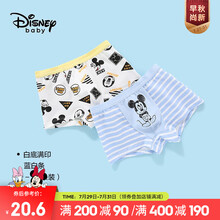 迪士尼儿童内裤男童平角裤95%棉四角裤男孩宝宝短裤底裤两条装 白底满印+蓝白条【平角裤】-2条装 110