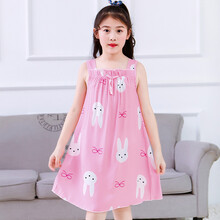 迪士尼高端轻奢儿童睡裙绵绸裙吊带女童子装纯棉夏季母薄款睡衣女宝宝公主少女旗舰官方专卖 粉色 蝴蝶结大兔 BLX 150码适合140-150cm75斤内