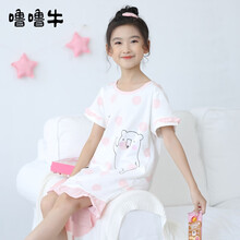 噜噜牛女童睡裙夏纯棉薄款短袖可爱小女孩公主风女宝宝睡衣儿童夏季 20505-粉色波点 150cm(16码建议身高140-145)