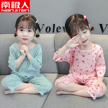 南极人童装【高品质】女童睡衣夏季女宝宝公主碎花家居服套装小女孩儿童七分中袖空调服 浅蓝色 130