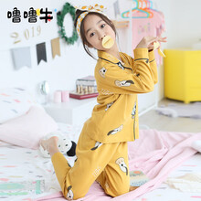 噜噜牛儿童睡衣女童秋季纯棉长袖女孩宝宝公主全棉中大童家居服套装 玉米黄-19203 160cm(20码建议身高150-155)