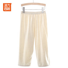 活力四射儿童睡裤男童纯棉七分裤薄款女童彩棉休闲学生中大童宝宝宽松家居裤夏季舒适亲肤打底空调服裤子 9241浅绿七分裤(男女同款) 170cm(建议...