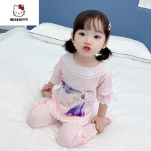 Hello Kitty 童装儿童睡衣女夏季冰雪奇缘女童棉质睡衣小女孩爱莎公主家居服夏季新款儿童套装 粉红色 120