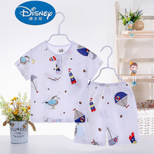 迪士尼穿着舒服的春夏季儿童睡衣绵绸女童小孩短袖宝宝棉绸家居服薄款套装 乳白色 小帆船-短袖 140-150cm 95码