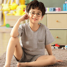 Disney/迪士尼品牌同款新品儿童睡衣夏季短袖纯棉男童薄款中大童男孩夏天宝宝全棉家居服套装 009浅灰条纹-短袖 140cm(16码/140CM【身高130-140