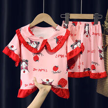 女童睡衣夏季短袖宝宝女孩小孩子中大童公主风卡通儿童家居服套装 7813草莓姑娘 12码【适合120-130厘米】