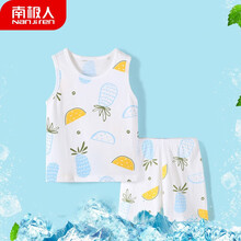 南极人 Nanjiren 儿童背心套装夏季男童无袖薄款女孩外穿宝宝内衣短裤男孩睡衣 菠萝小西瓜A-浅蓝 80