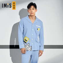 爱美丽【海绵宝宝IP联名款】内衣男士翻领开衫情侣睡衣家居服 长袖套装 IM46AYH1天蓝色175