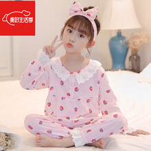 迪士尼3-6岁好看的7-12岁儿童睡衣女春秋季纯棉长袖薄款公主风女童宝宝女孩空调家居服套装小孩子的 束口-粉草莓+送发带 10码【110cm-120cm】