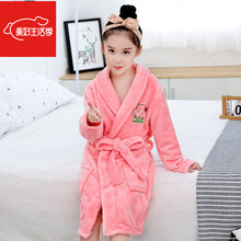 迪士尼适合2-12岁小孩子冬天穿的童装儿童加厚睡袍男女童秋冬季法兰绒浴袍中大童珊瑚绒睡衣家居服 粉红色无帽 140cm(S码建议身高121-140cm)