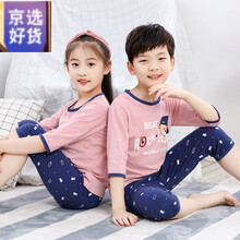 奇骏鼠新品1-16岁小孩穿的夏季薄款儿童纯棉七分袖套装居家服睡衣男童女童空调服宽松家居服 粉熊 150