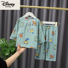 迪士尼 合适小孩子 儿童睡衣棉绸夏季薄款宝宝绵绸套装男女孩中大童3-5-7-9岁家居服夏天款 小恐龙 75码身高105-110厘米