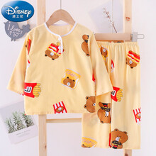 迪士尼旗舰官方店【特价捡漏】女童绵绸睡衣夏季儿童中大童薄款家居服男童装宝宝棉绸人造棉套装 薯条熊030 130cm(85码/适合120-130CM)