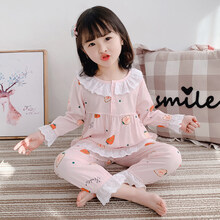 巴乐淘ゞゞ(当季新品)1-14夏季儿童棉绸睡衣女童宝宝长袖薄款公主空调服亲子女孩家居服套装 点点草莓(棉绸花边套头) 120cm(120码(适合身高105-115cm)