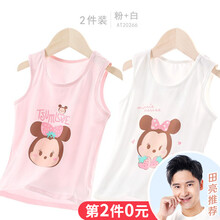迪士尼女童背心宝宝纯棉儿童内衣夏季薄外穿打底护肚女孩内穿吊带 D款 粉白 AT20266 120