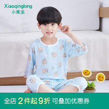 小青龙夏季儿童棉绸睡衣男童女童宝宝绵绸小孩夏天八分薄款男孩空调套装 蓝小熊(男宝宝) 58码/90cm(建议80-88cm)
