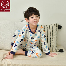 优贝宜 儿童内衣套装 男女童长袖睡衣宝宝休闲春衣裤 中大童春装 飞机 160