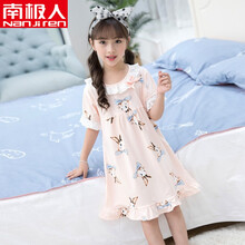 南极人童装品牌专卖女童睡裙夏季薄款纯棉短袖睡衣小孩花边公主宝宝家居服儿童连衣裙 杏色 130