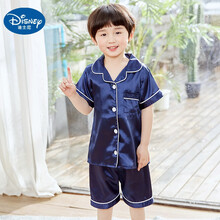 迪士尼小孩子穿的儿童冰丝睡衣男童薄款夏季短袖男孩真丝绸夏天宝宝空调家居服套装 蓝色 12码身高120-130cm体重45-55斤