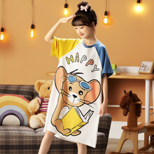 【舒适透气】浪莎儿童睡衣女童睡裙纯棉短袖夏季薄款女孩公主中大童母女亲子家居服 711(睡裙款) 160cm(160cm M码(身高155-160c
