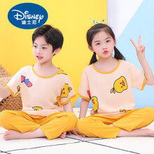 【捡漏特价】迪士尼DISNEY儿童棉绸睡衣女童夏季长袖薄款套装女孩大童亲子家居服宝宝空调服 活力桔色 短袖小鸭男女可穿 90码 身高135-140厘米