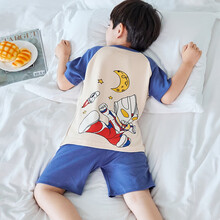 洛宠儿童睡衣男孩夏季薄款短袖纯棉卡通男童中大童宝宝夏天家居服套装 LX-蓝色奥特曼# 14码 130-140cm
