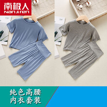 南极人旗舰大牌品质1-5岁宝宝空调服睡衣儿童莫代尔睡衣男女童宝宝夏季薄款冰丝小童女空调家居服夏装套装 蓝色+灰色 七分款 120cm