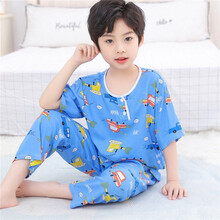 儿童睡衣女童棉绸套装夏季大童小孩短袖绵绸薄款宝宝空调家居服 蓝色 DXCK工程车 90码建议身高130-140CM