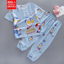 南极人小孩穿的儿童睡衣夏季薄款棉绸套装夏天男童宝宝男孩绵绸人造棉家居服特价捡漏 蓝白 DL504-短灯大奥特 90码 身高130-140cm