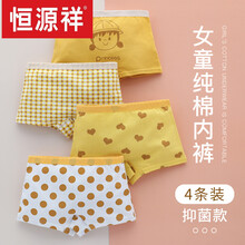 【特价捡漏】恒源祥官方旗舰女童内裤棉三角儿童四角短裤小女孩女宝宝平角裤头夏季薄款12岁 柠檬女孩(平角纯棉)4条 -款 XXL码12-14岁建议55-75斤