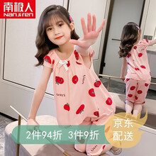 南极人(Nanjiren)儿童睡衣夏季女童棉绸套装宝宝绵绸空调家居服套装可爱公主风中大童冰丝短袖薄款 可爱头像 160