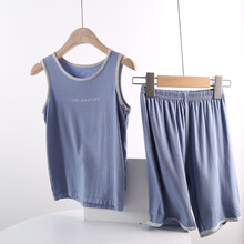 此心如衣男童睡衣夏季薄款冰丝无袖背心短裤套装套头两件套儿童莫代尔外穿家居服宝宝小孩中大童夏天 月光蓝 吊牌150码-建议身高140