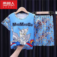 南极人夏季儿童睡衣短袖男孩女童中大童薄款卡通宝宝男童学生家居服套装 蓝色奥特曼短袖 145建议140-150身高