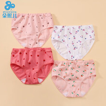 【抑菌底裆】朵熙儿4条装男童女童内裤三角平角儿童宝宝内裤中大童青少年短裤 草莓花朵三角组合 120