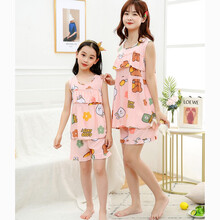 小孩穿的棉绸睡衣儿童女童睡衣夏季儿童中童大童女孩棉绸套装夏天薄款母女亲子装家居服南极人同款 藕色 薯条 陶子睡衣 180cm