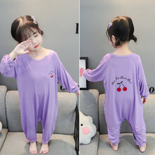 儿童防踢睡袋夏季薄款小男孩女童莫代尔连体睡衣夏天宝宝空调服AA 樱桃紫(长袖) 120cm